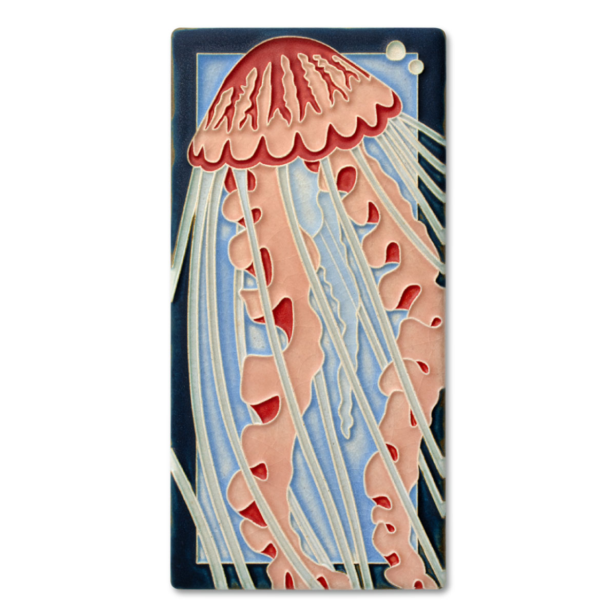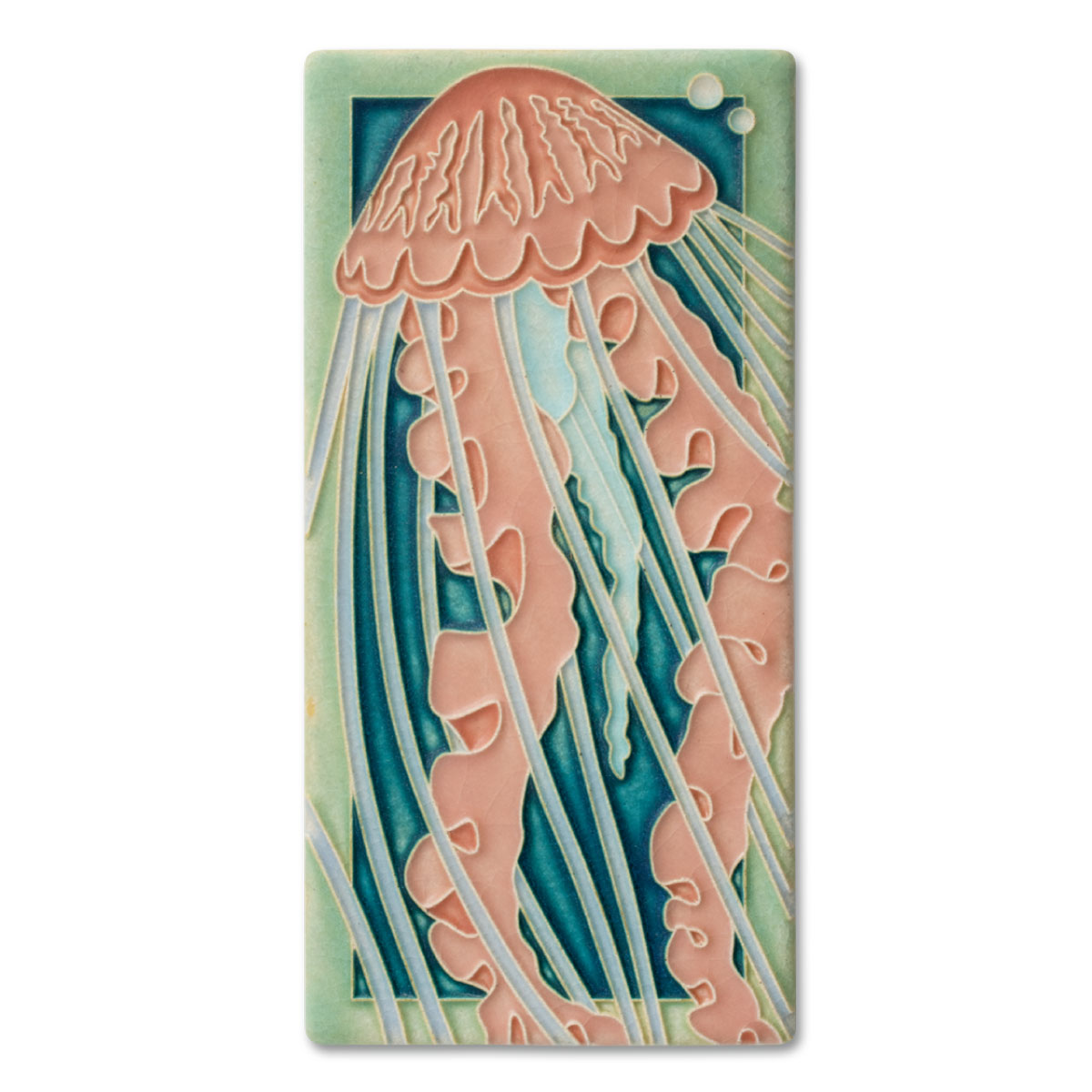 The first release in the series, Jellyfish, was designed by Motawi artist Ronan Sampson and selected from more than 60 entries in an internal art competition. The 4x8 tile features a spiraling, flowing composition that captures the delicate tension of its subject—both graceful and quietly electric with motion—and can be installed in any orientation.