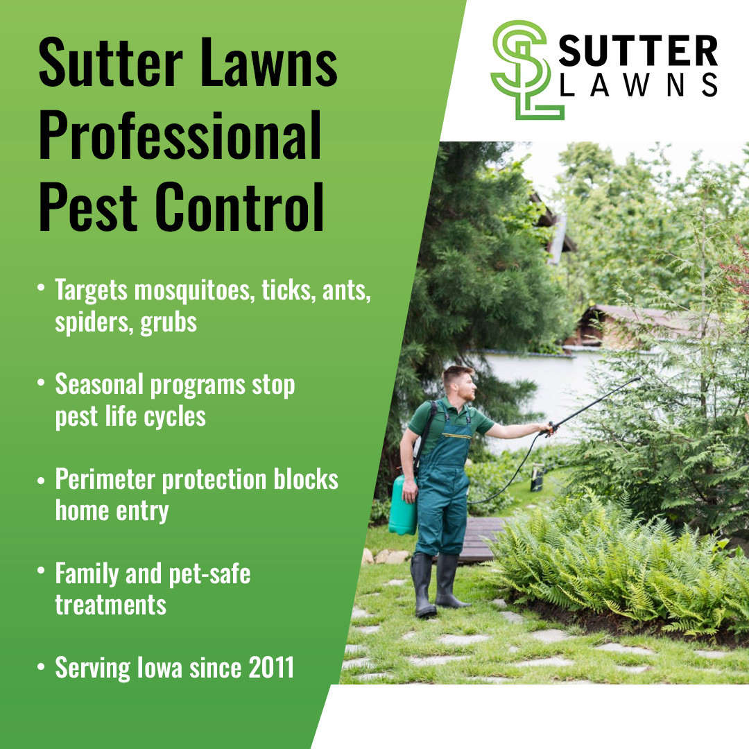 Sutter Lawns has been serving homeowners across Iowa since 2011. The company focuses on professional pest management services that combine local knowledge with safe, targeted methods. Their team provides: